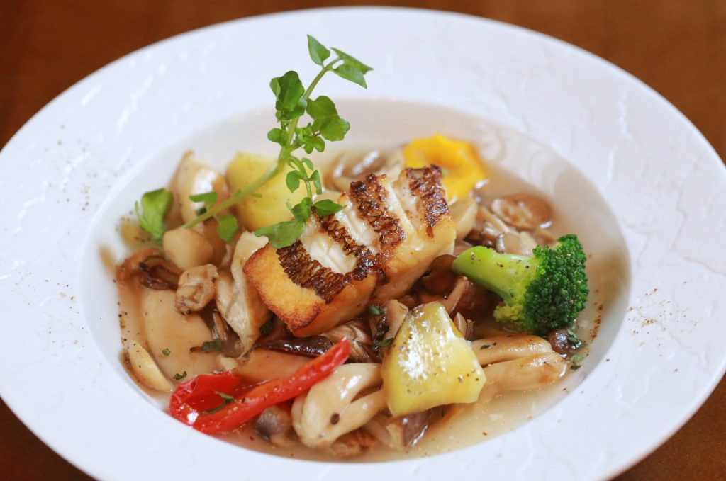 今月のお魚ランチは旬のキノコをたくさん使ったお料理です。